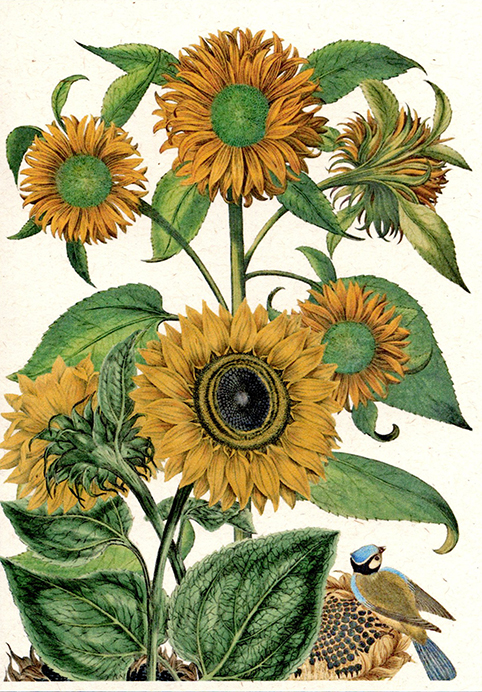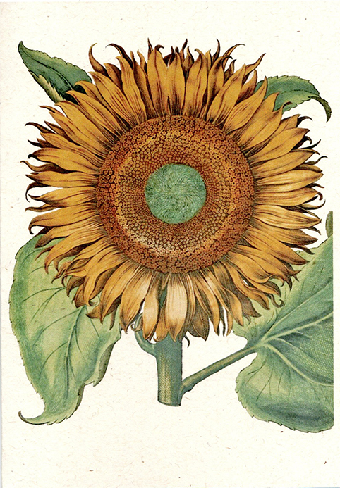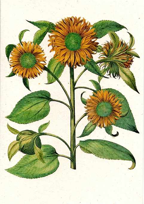 Back of the card reads: Helianthus annuus, annual sunflower, Gottorfer Codex (1649-1659), plantportraitsbooks.com